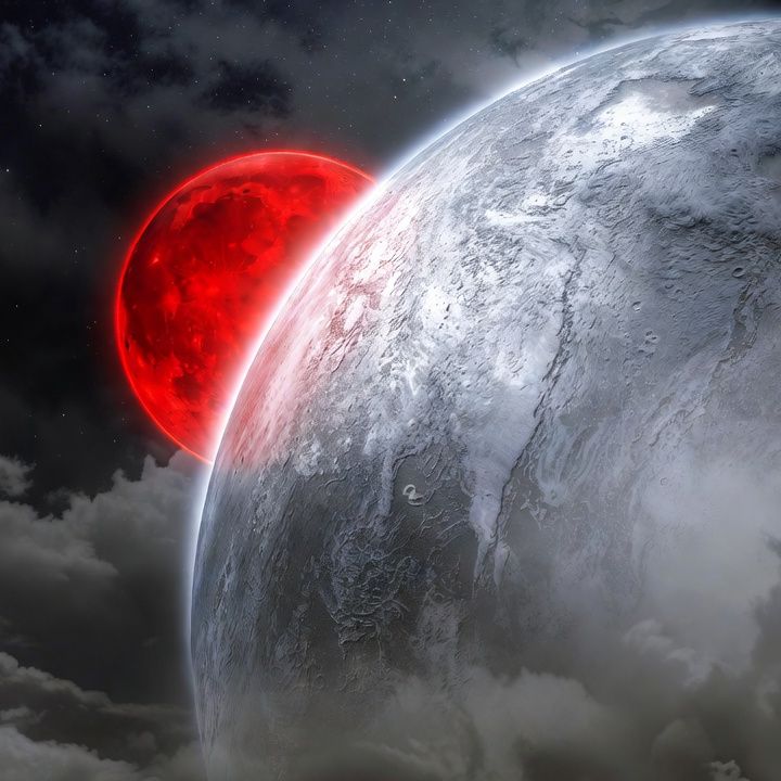 La pleine lune rouge sang venait de se lever sur Symviosi. Elle est était symbole d’orage et surtout de grand changement, contrairement à ses soeurs qu’étaient la lune blanche, noire et bleue. Elle ne se révélait que très rarement, préférant souvent se cacher derrière un nuage de pluie laissé par la lune bleue en attendant sa venue.